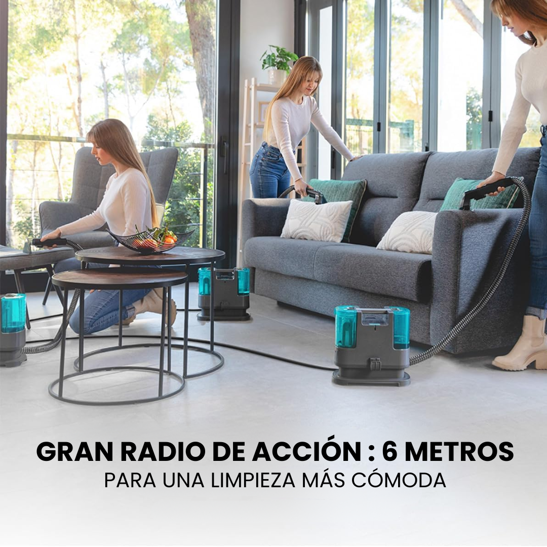 Este aspirador potente y versátil elimina polvo, suciedad y manchas de tapicerías, alfombras y textiles en segundos. Compacto, fácil de usar y con resultados profesionales desde tu casa.