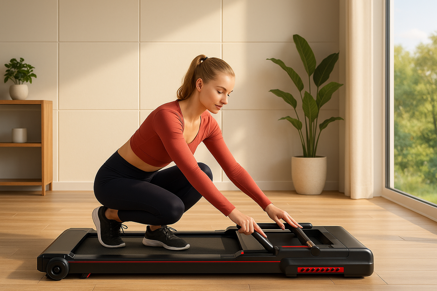 La cinta se pliega en segundos, ocupando el mínimo espacio. Además, sus ruedas integradas facilitan el transporte sin esfuerzo.