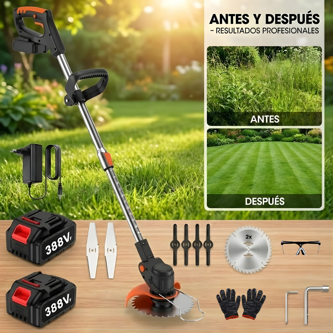 Incluye varios tipos de cuchillas: cuchillas de plástico para hierba suave, cuchillas de aleación para arbustos y paja, y cuchillas de sierra de acero inoxidable para ramas más gruesas. Esto permite adaptarse a diferentes necesidades de jardinería.