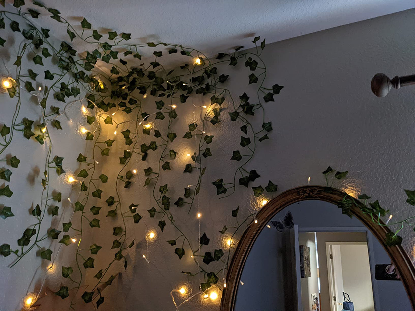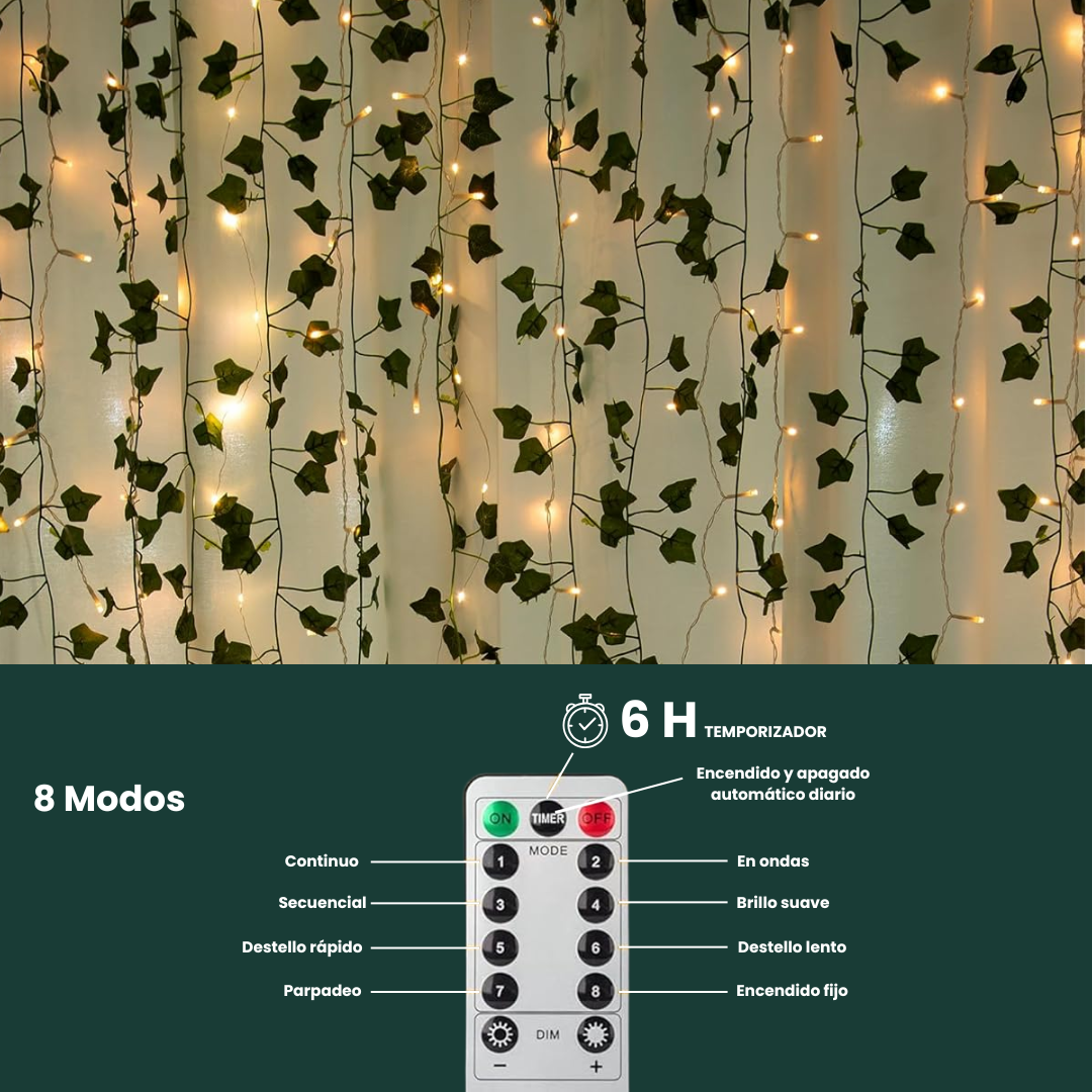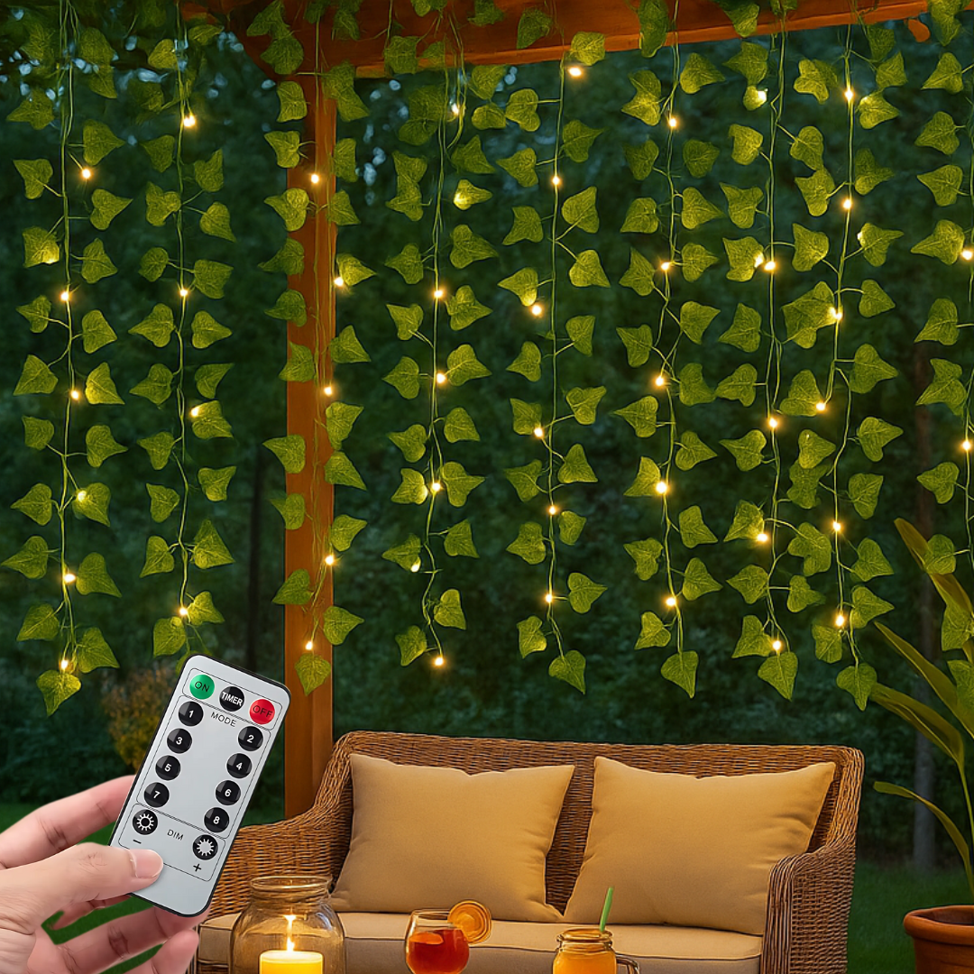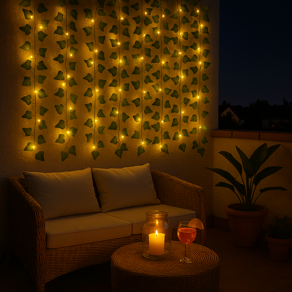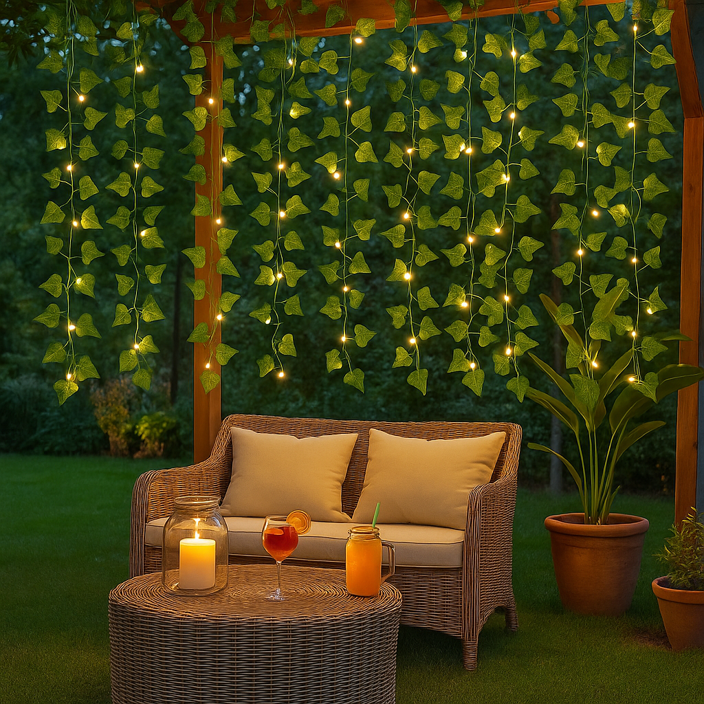 Estas guirnaldas con hojas y luces LED dan un toque cálido y natural, ideal para las noches de verano. Perfectas para crear un ambiente chill sin complicaciones.